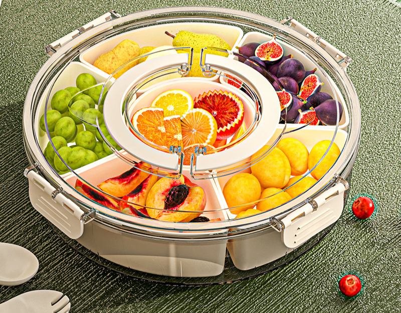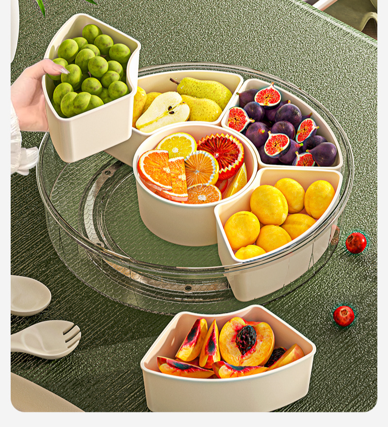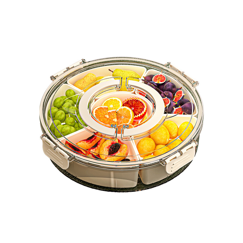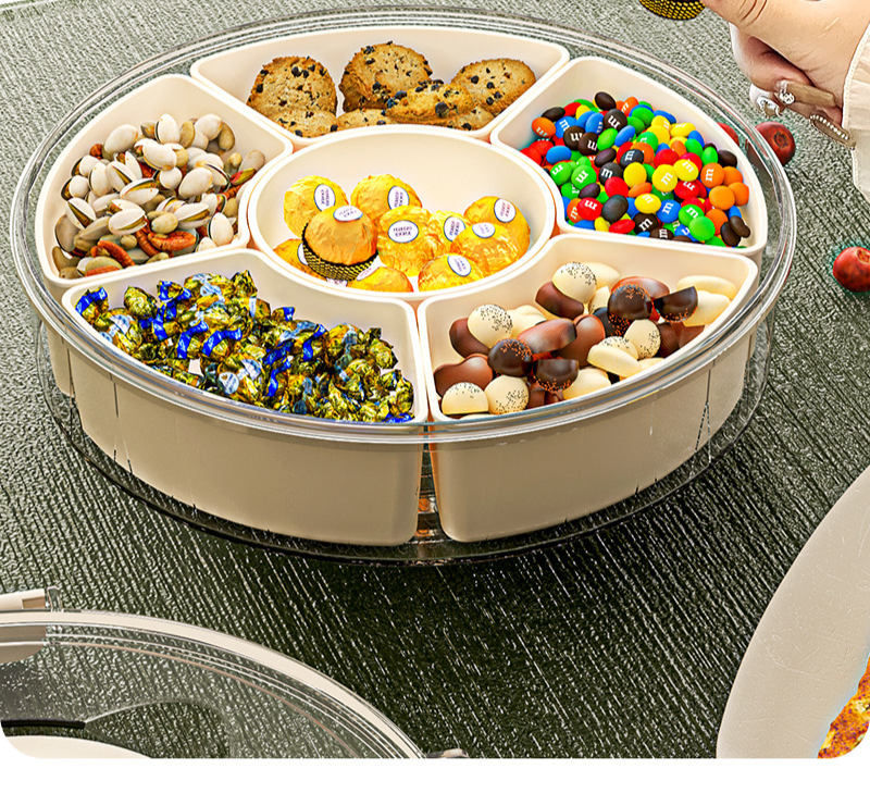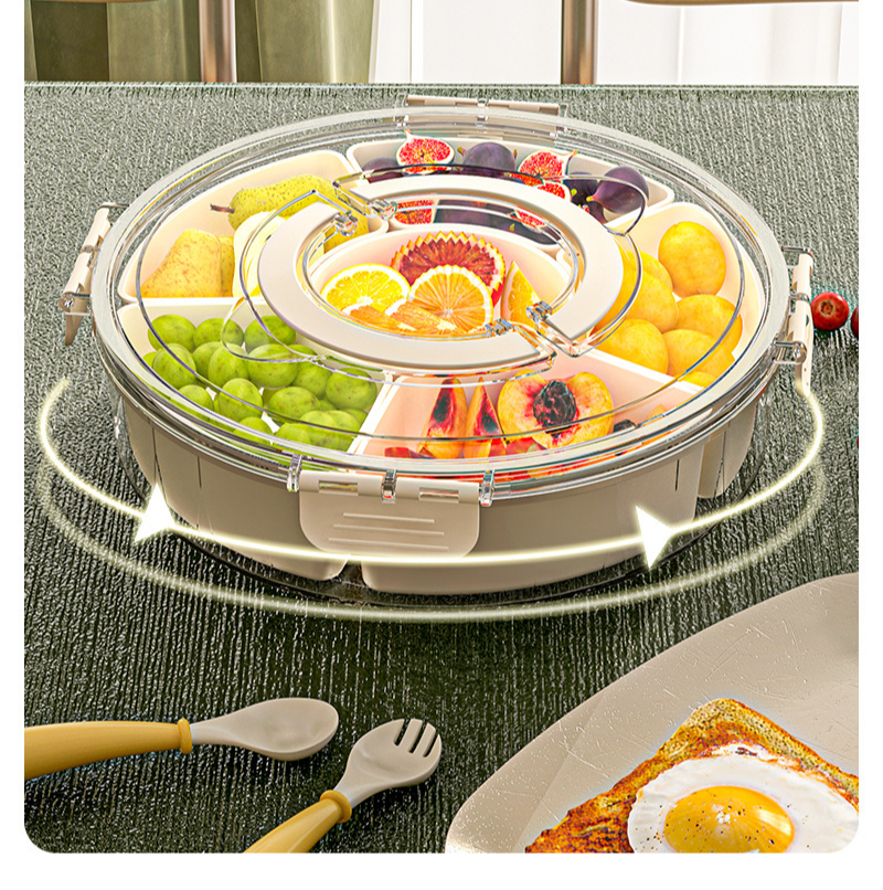 ถาดเก็บสินค้าแบบหมุนได้หกแยกพร้อมที่จับสำหรับใช้ในครัวเรือน