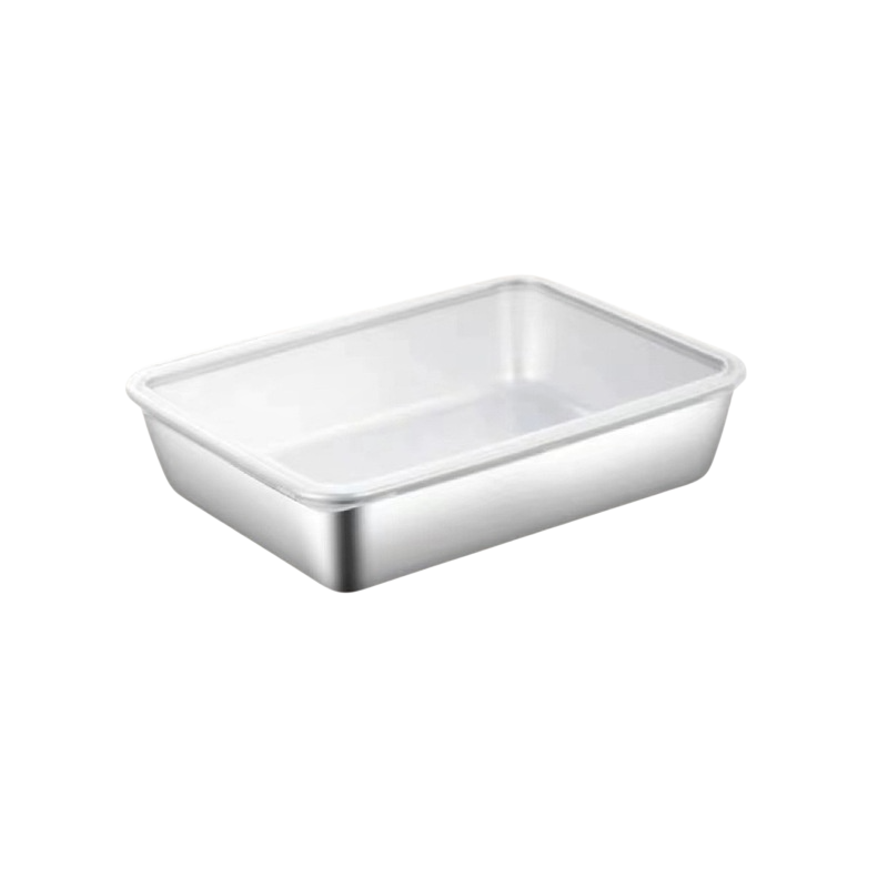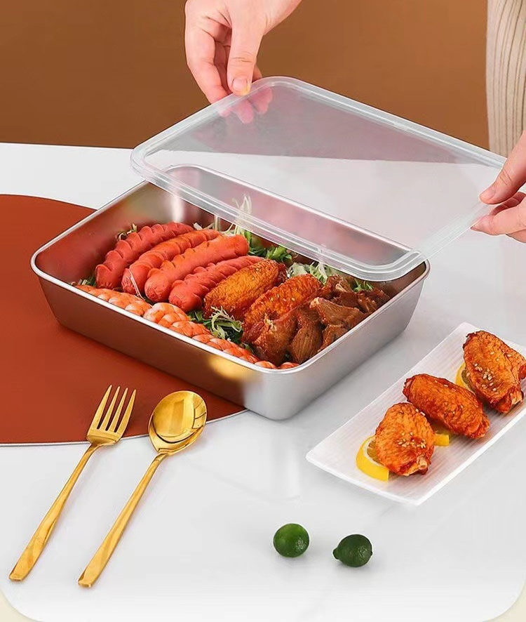 สแตนเลสสตีลยึดกล่องอาหารกลางวันสแควร์พร้อมฝาโปร่งใส